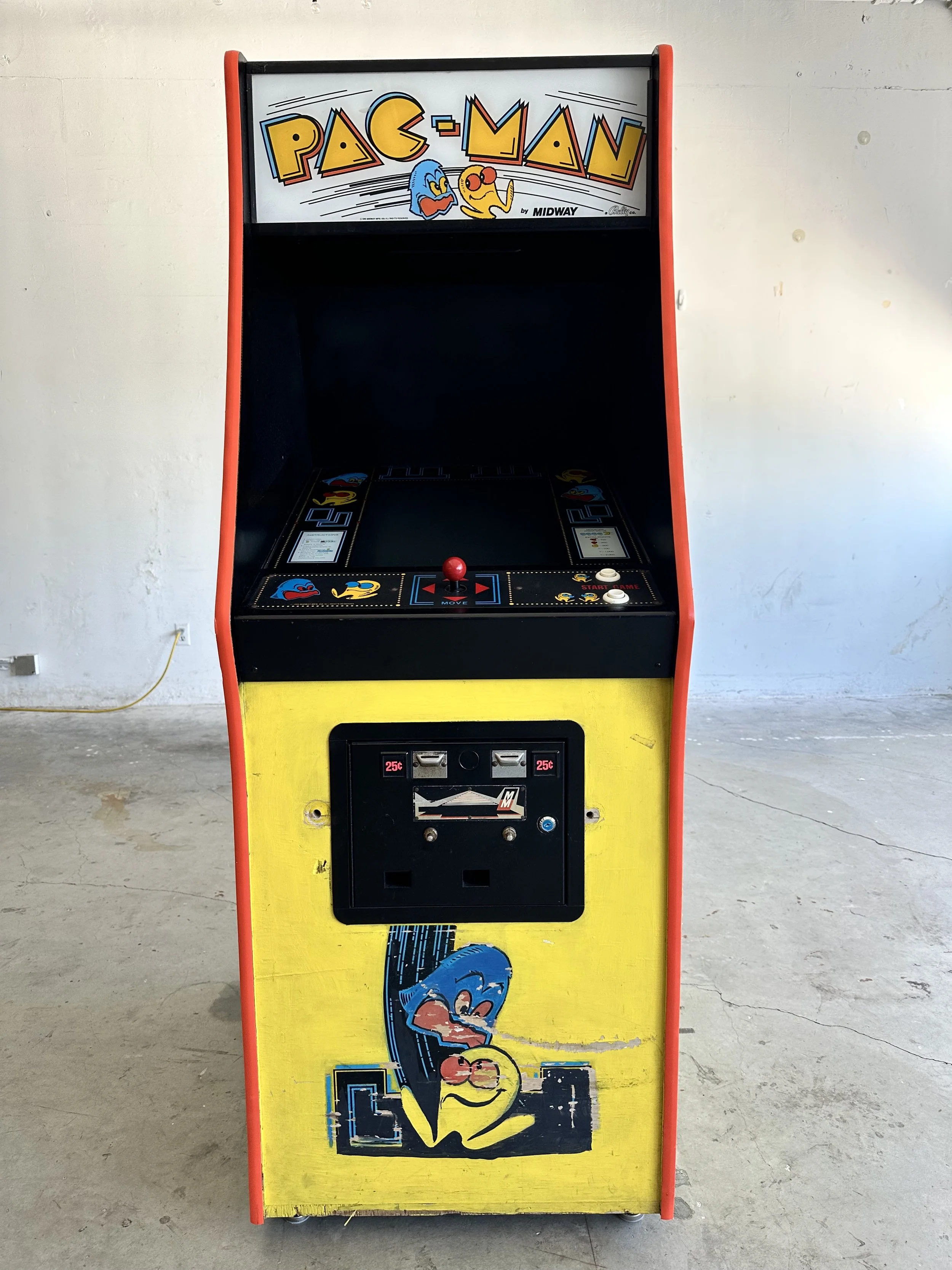 Step into the golden age of arcade gaming with the legendary Pac-Man cabinet. Released by Midway in 1980, this iconic machine isn’t just a game—it’s a piece of pop culture history. Featuring a bright yellow cabinet, colorful ghost artwork, and the unforgettable "waka-waka" sound effects, Pac-Man invites players of all ages to experience the thrill of one of the most influential games ever made.